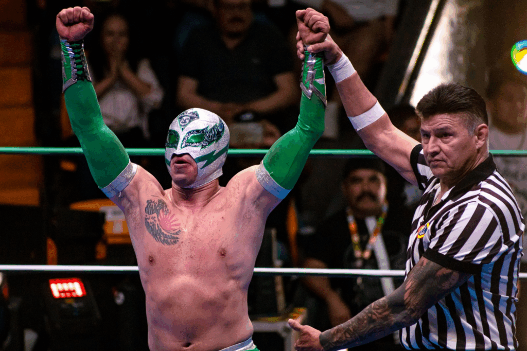 La Lucha Libre se apoderó del Palenque de la Feria en una velada que resultó inolvidable para los aficionados, con un gran ambiente familiar, organización impecable y la presencia de auténticas figuras de la lucha.